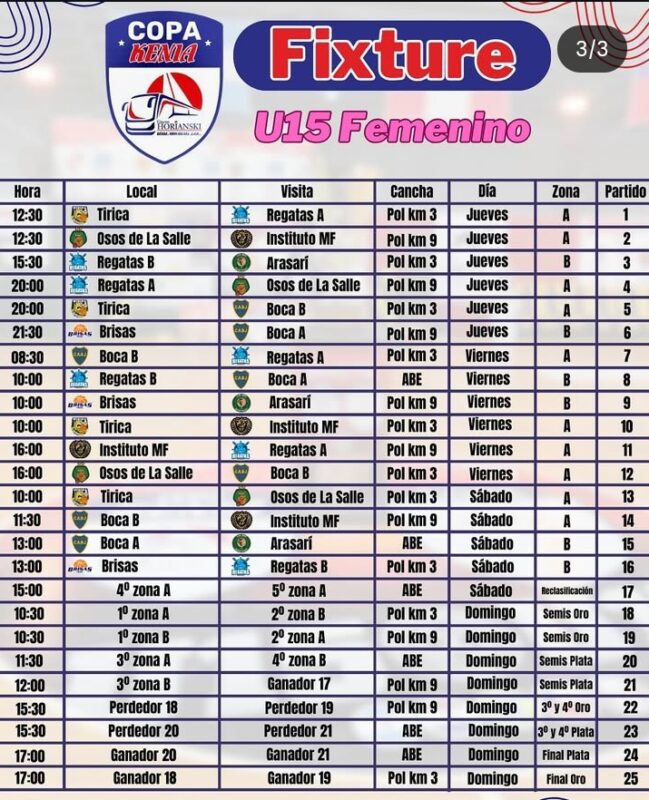 El calendario de partidos se repartirá entre el Polideportivo Km 9, el Polideportivo Km 3 y la cancha de ABE, con cruces desde las primeras horas de la mañana y jornadas que prometen ser maratónicas.
