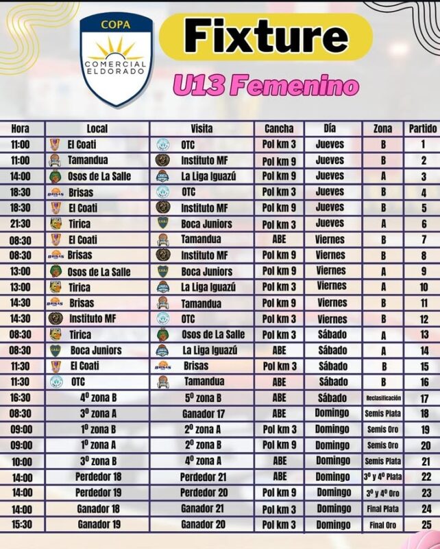 La acción comenzará esta noche, con el partido inaugural a las 21 horas entre Tirica (Eldorado) y Boca Juniors, categoría U13, en el Polideportivo Km 9. Un clásico cruce que encenderá la expectativa de la comunidad local.