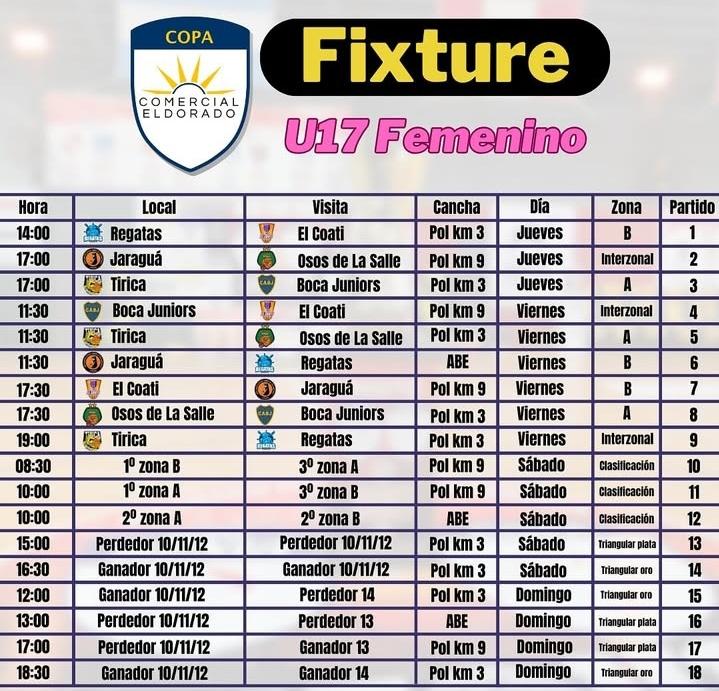 Tirica vs. Boca Juniors (U17) – Polideportivo Km 3, 17 hs.