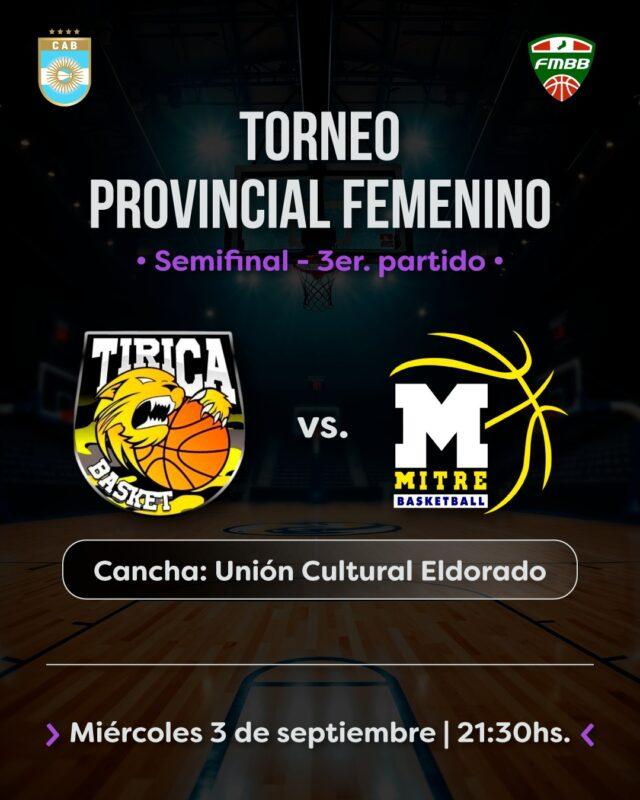 Tirica y Mitre jugarán este miércoles en Eldorado el tercer y decisivo partido de semifinales del Provincial Femenino de Básquet. El ganador enfrentará en la gran final a Tokio, vigente campeón del torneo.